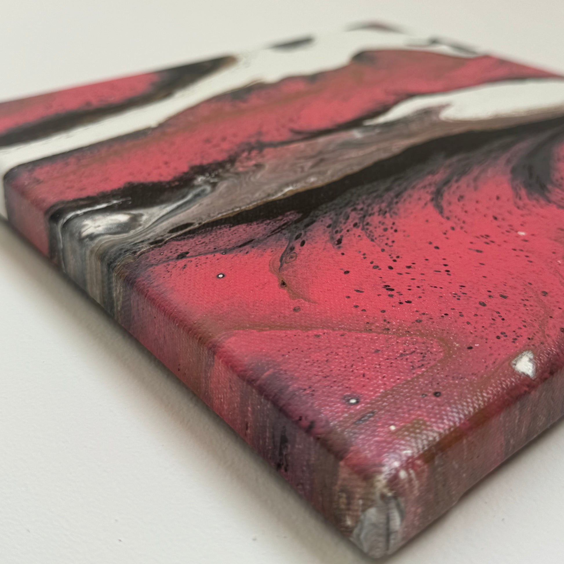 Description : Cette œuvre abstraite joue sur la fluidité et le mouvement des couleurs. Les teintes de rose s’entrelacent aux des nuances de blanc, de noir et de doré, évoquant la naissance de la lumière à travers l’obscurité. On n’a l’impression d’observer un paysage de nuit qui laisse place au jour, d’où le nom “Yoakeme” qui signifie “L’aube” en japonais.